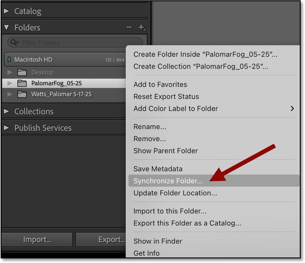 5) To view the PSD Master File in Lightroom, sync the folder or subfolder that was created in Step 1: