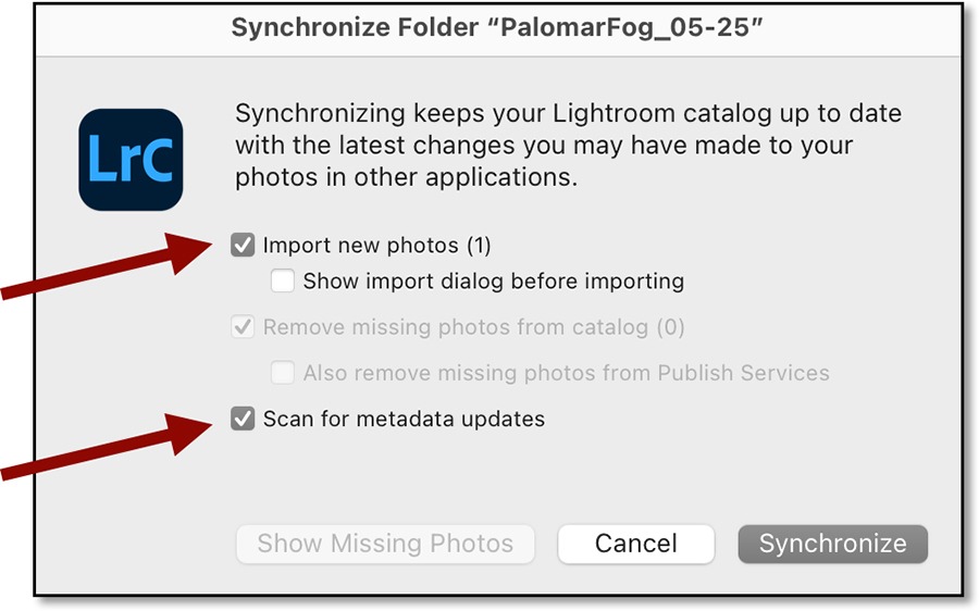 • Once saved in Photoshop (as a PSD), synch Folder in Lightroom