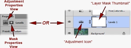 1. OR Click on Adjustment Icon or Layer Mask Thumbnail in the Adjustment Layer (in the Layers Panel)