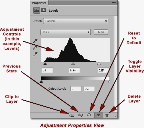 The Properties Panel has two “Views”, both tied to the active Adjustment Layer