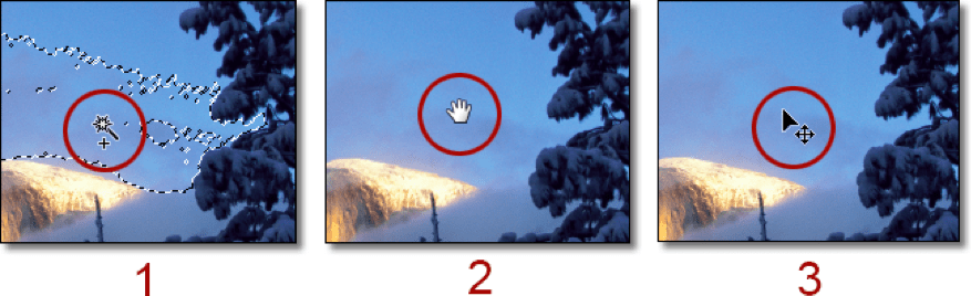 - In Image 1, the active tool is the Magic Wand Toolrepresented by the icon circled in red. – It’s fairly easy to see, but if you accidentally click in your image with it active, you’ll be making an unwanted selection.